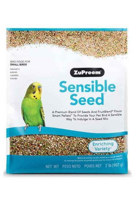 Sensible Seed Bird Food is a premium blend of seeds and FruitBlend Flavor Smart Pellets to provide your bird a sensible way to indulge in a seed mix. This blend includes a delicious mix of right-sized pieces for your bird which helps minimize wasted food. Available in 2 lb bags for parakeets, budgies, canaries and finches and other small birds that prefer this food size.